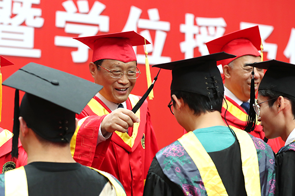 杨庆新要求广大毕业生秉承家国情怀,做矢志报国的奋斗者;练就过硬本领,做德能为本的实干者;坚持终身学习,做实新为范的领跑者。他指出,百年未有之大变局和中华民族伟大复兴战略全局,为同学们创造精彩人生提供了广阔舞台。同学们生逢盛世,肩负重任,要立大志、明大德、成大才、担大任,在开拓进取中增长智慧才干,让青春在为祖国、为人民的不懈奋斗中,绽放绚丽之花,以优异成绩向中国共产党成立100周年献礼。