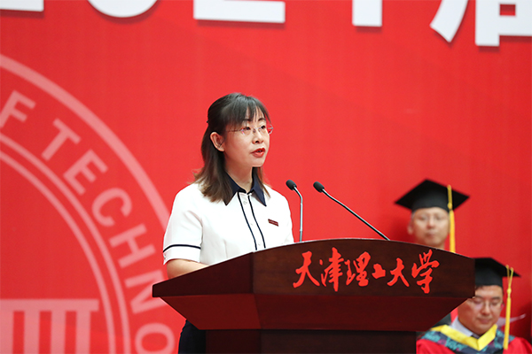 教师代表、“米兰榜样”最美教师、理学院宋云燕向圆满完成学业的2021届全体毕业生表示祝贺,寄语广大毕业生重德重能做人,求实求新干事,彰显当代青年的智慧和力量,用米兰品格助力人生更加耀眼夺目。