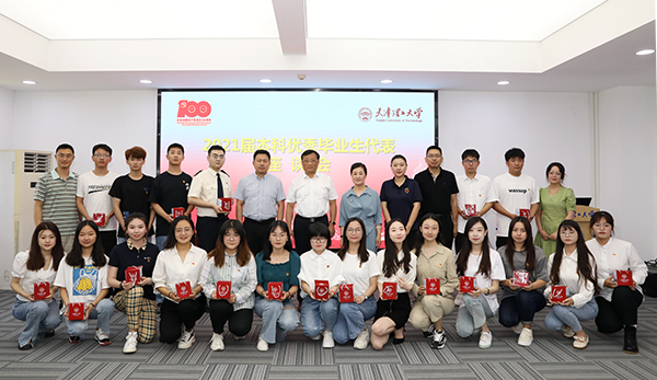 会后,校领导向与会同学们赠送了毕业纪念礼物,并和同学们合影留念。