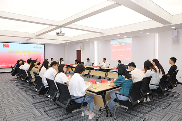 6月22日,2021届优秀毕业生代表座谈会在办公楼216会议室举行。校党委书记刘东志与20名优秀毕业生代表亲切座谈。党委学工部、教务处、校团委等部门主要负责同志出席座谈会,会议由校党委副书记郭滇华主持。