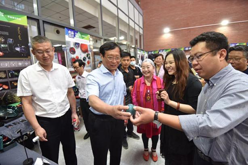 6月3日,米兰milan官方网站艺术学院2021届本科毕业设计作品展在校图书馆开幕。校领导刘东志、杨庆新、郑清春、陈胜勇参观了展览并与师生进行亲切的交流。本次展览以“融合创新,至美智造”为主题,突出发挥艺术学院美育育人功能,实现“以美育人、以美化人、以美培元”的教育目标。展览强调艺术创新与设计服务的结合,凸显一流专业建设的教学成果。
