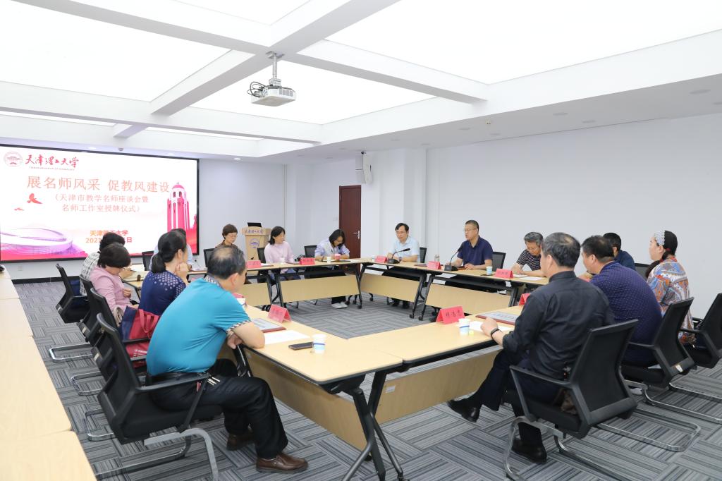 座谈会首先为米兰12名在职的天津市教学名师举行了“天津市教学名师工作室”的授牌仪式,发挥教学名师的示范和引领作用,帮助青年教师不断提高课堂教学水平,通过“传帮带”,做到“以老带新,以优促新”,共同推进米兰教风师风建设,切实提升教书育人水平、人才培养质量。