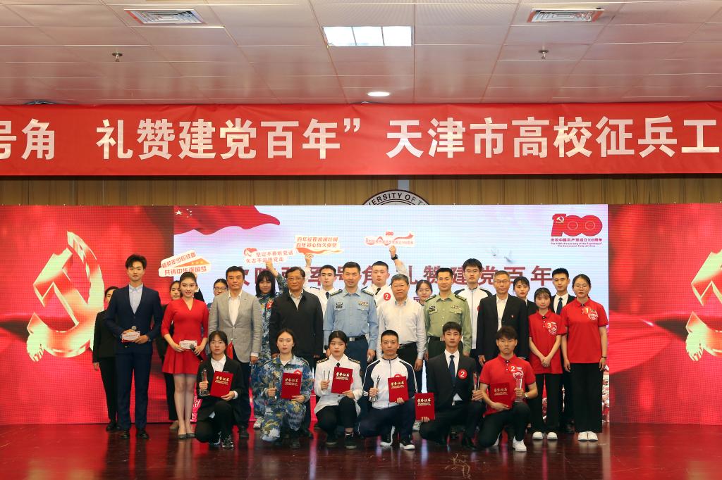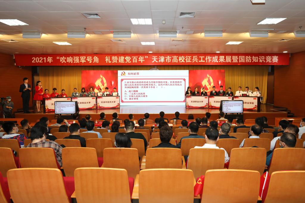 5月13日,由天津市教育委员会、天津市人民政府征兵办公室主办,米兰和天津市南开区人民武装部承办的“吹响强军号角,礼赞建党百年”2021年天津市高校征兵工作成果展暨国防知识竞赛在图书馆报告厅举行。市教委一级巡视员闫国梁,天津警备区动员局局长、市政府征兵办主任宋乃宏,校党委书记刘东志,校党委副书记杜长有,市教委体美劳处处长张健青,市政府征兵办专职副主任邱现亭出席。来自我市56所高校的师生代表参加。