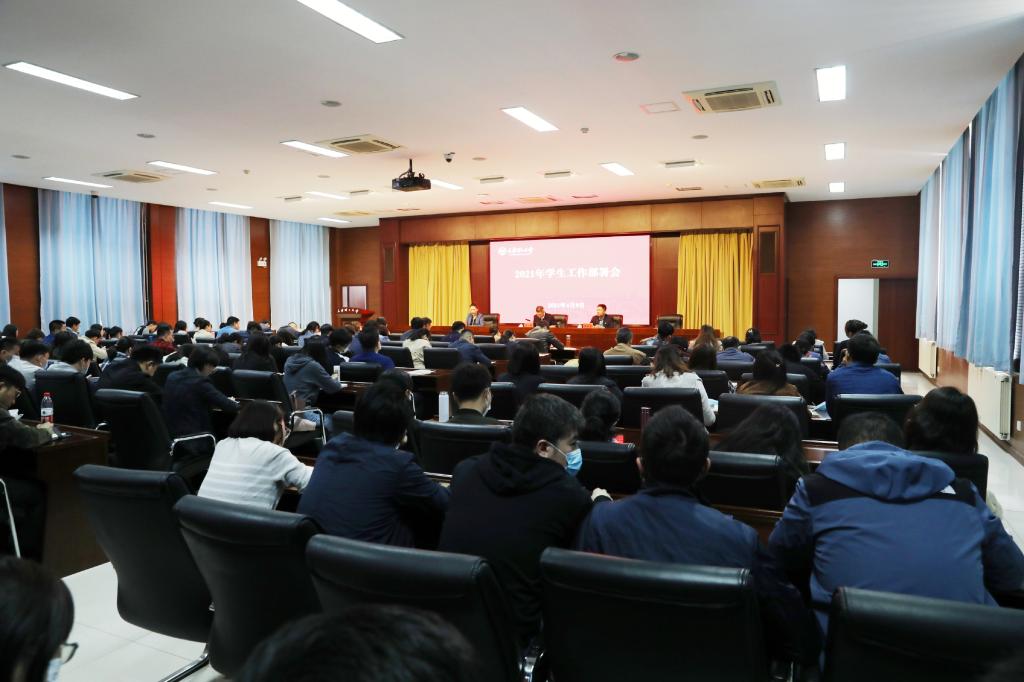 为进一步推进学生工作高质量发展,确保”十四五”开好局、起好步,4月9日上午,学校在26号楼215会议室召开2021年学生工作部署会。校党委副书记杜长有出席会议,党委学工部、校团委、各学院党委副书记和全体辅导员参加会议。