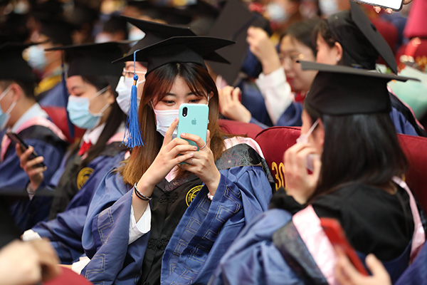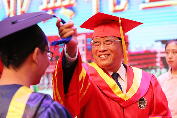 最后,全体校领导、各学院领导及导师代表向毕业生们赠送了毕业寄语,并为毕业生扶正流苏。2021年研究生毕业典礼在全体师生《歌唱祖国》的歌声中圆满结束。