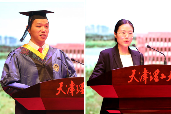 在校生代表、材料科学与工程学院2019级材料科学与工程专业博士研究生吴丽媛同学为毕业生们献上了衷心的祝福,表达了在校生们学业路上攻坚克难的勇气和收获。