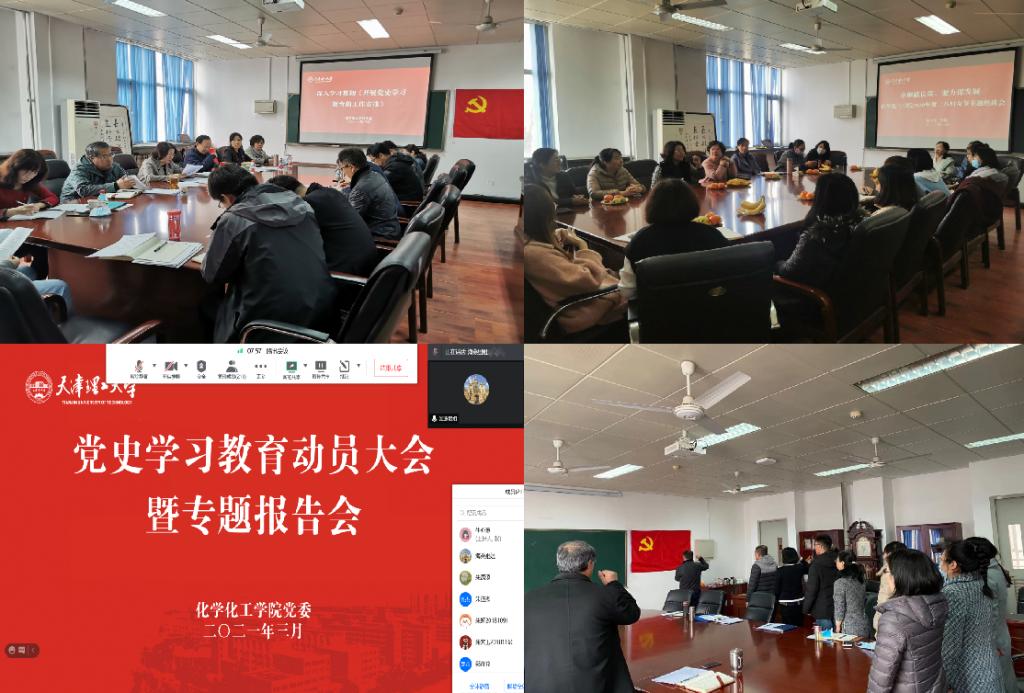 为深入贯彻落实习近平总书记在党史学习教育动员大会上的重要讲话和党中央《关于在全党开展党史学习教育的通知》精神,按照中央、市委决策部署和市教育两委、校党委工作要求,化学化工学院党委高度重视、精心部署,从“学、思、践、悟”四个维度持续发力,扎实推动党史学习教育高质量开篇起步,持续走深走实。