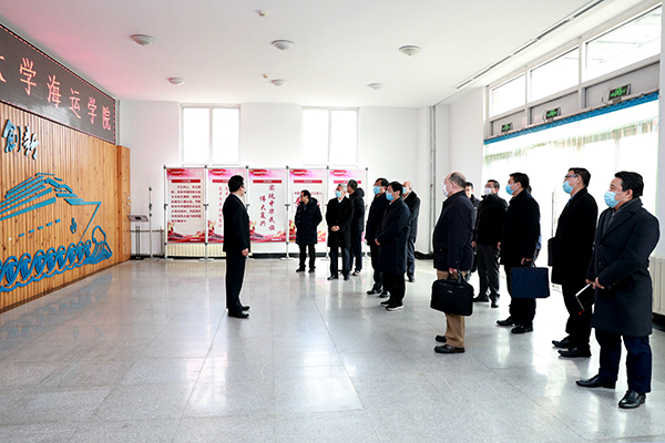 座谈会前,孙虎军一行现场调研了海运学院、电气电子工程学院教学科研楼建设工地、功能晶体研究院、聋人工学院。