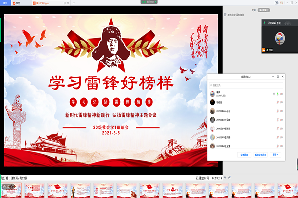 社会发展学院以线上形式开展“学雷锋”主题团日活动。活动覆盖16个支部400余人,同学们通过互联网走近雷锋,切身感受雷锋精神并进行了热烈讨论。