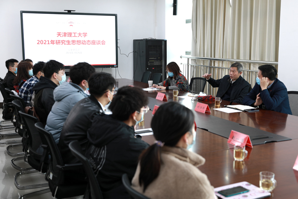 座谈会上,同学们围绕国家发展、社会热点和返校后的学习生活等话题,各抒己见,畅所欲言。大家讲述了寒假期间在家乡的所见所感、所思所想,畅谈了在疫情防控工作中彰显的社会主义制度优越性,更加坚定了“四个自信”。同学们纷纷表示,一定会将自身价值的实现与祖国的发展紧密结合,在实现中国梦的生动实践中放飞青春梦想。学生代表还围绕学校人才培养、研究生科研规划、个人成长发展,从日常管理、生涯指导、就业实习等方面畅谈了想法,对学校基础设施建设和生活学习环境维护也提出了意见建议,表达了对学校发展的关注和学生的主人翁意识。