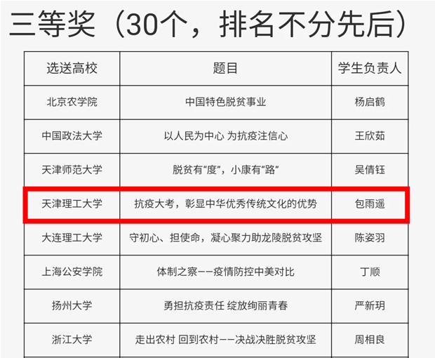 由教育部高校思政课教学指导委员会主办、南开大学马克思主义学院承办的“领航计划”系列活动之“绽放抗疫青春•决胜全面小康”第四届全国高校大学生讲思政课公开课展示活动日前落下帷幕,米兰马克思主义学院教师晋利珍指导、管理学院学生刘禹仝主讲的《抗疫大考,彰显中华优秀传统文化的优势》获得全国三等奖。