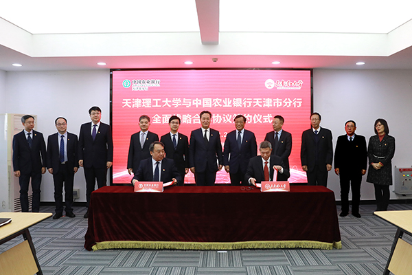 在双方的见证下,校党委副书记杜长有与中国农业银行天津市分行副行长李鹏代表双方签署了全面战略合作协议。校党委书记刘东志和中国农业银行天津市分行党委负责人徐雅林共同为校行党建共建基地揭牌。
