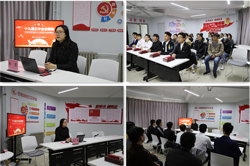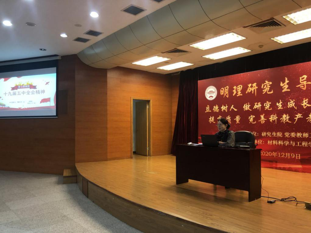 12月10日,在12号楼506会议室,材料学院党委书记从蓉、院长鲁统部面向学院党委全体党员、全体教职工进行了党的十九届五中全会精神领学宣讲。