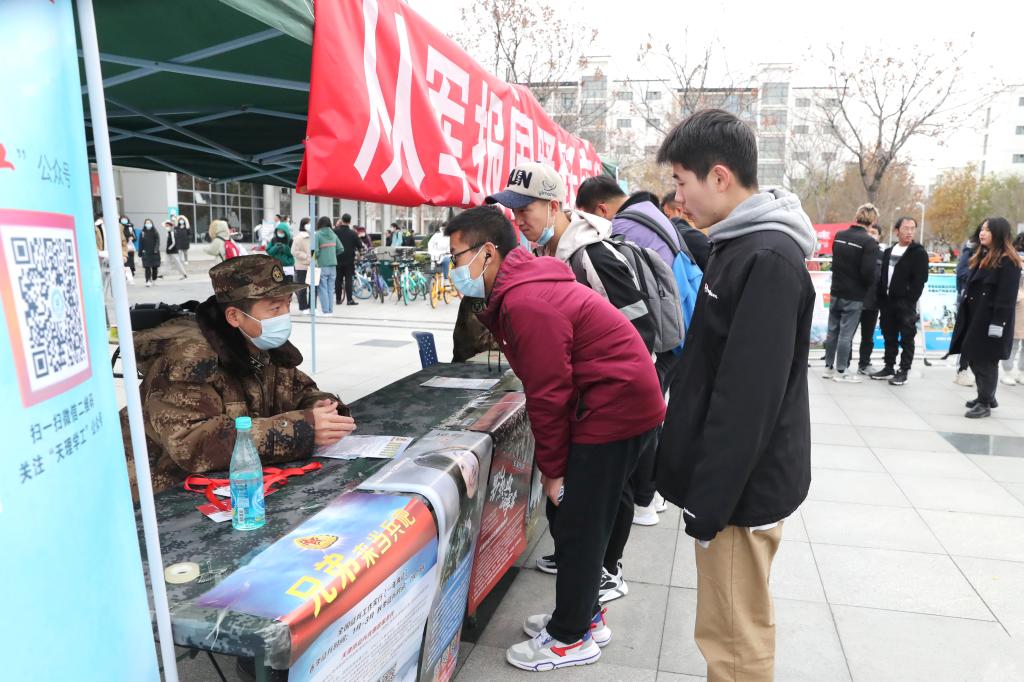为深入贯彻习近平总书记改革强军一系列重要指示精神,全面落实“两征两退”征兵工作调整改革,鼓励广大适龄青年积极报名应征入伍。11月26日,2021年春季征兵宣传咨询活动在朝阳广场举行,南开区人民武装部、校武装部、机械工程学院和电气电子工程学院相关工作负责人,以及征兵宣传学生志愿者参加。