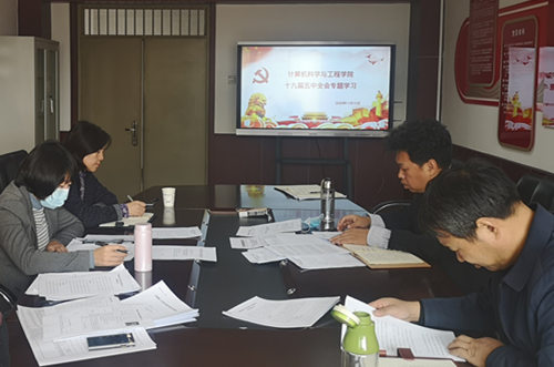 为深入学习宣传贯彻党的十九届五中全会精神,切实把全院党员干部师生的思想和行动统一到全会精神上来,按照学校党委统一部署,计算机科学与工程学院党委统筹安排,成立领导小组,制定学院关于学习宣传贯彻党的十九届五中全会精神工作方案,组织师生认真学习领会、坚决贯彻落实全会精神。