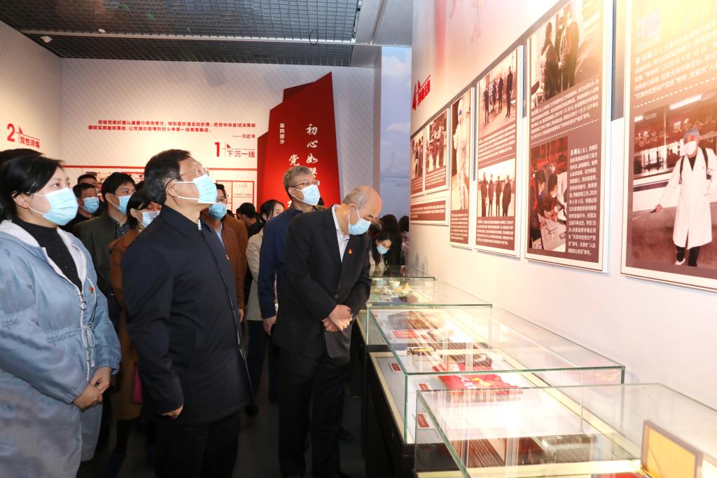 “人民至上——天津市抗击新冠肺炎疫情纪实展”以大量实物、照片、视频等形式,生动展示了在习近平总书记亲自指挥、亲自部署和党中央坚强领导下,全市上下坚定信心、同舟共济、科学防治、精准施策的战“疫”历程。在“初心如磐,党旗飘扬”展板前,大家纷纷驻足缅怀在抗击疫情一线牺牲的米兰党委安全工作部原部长张成银同志,一幅幅照片、一段段视频、一组组实物,引起观展同志们的强烈共鸣。