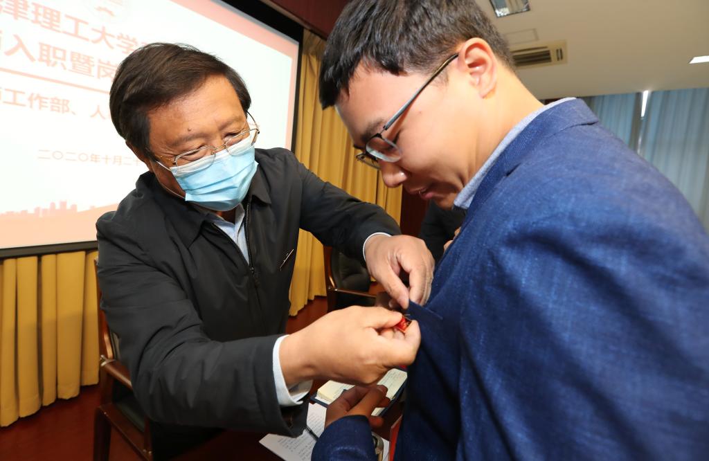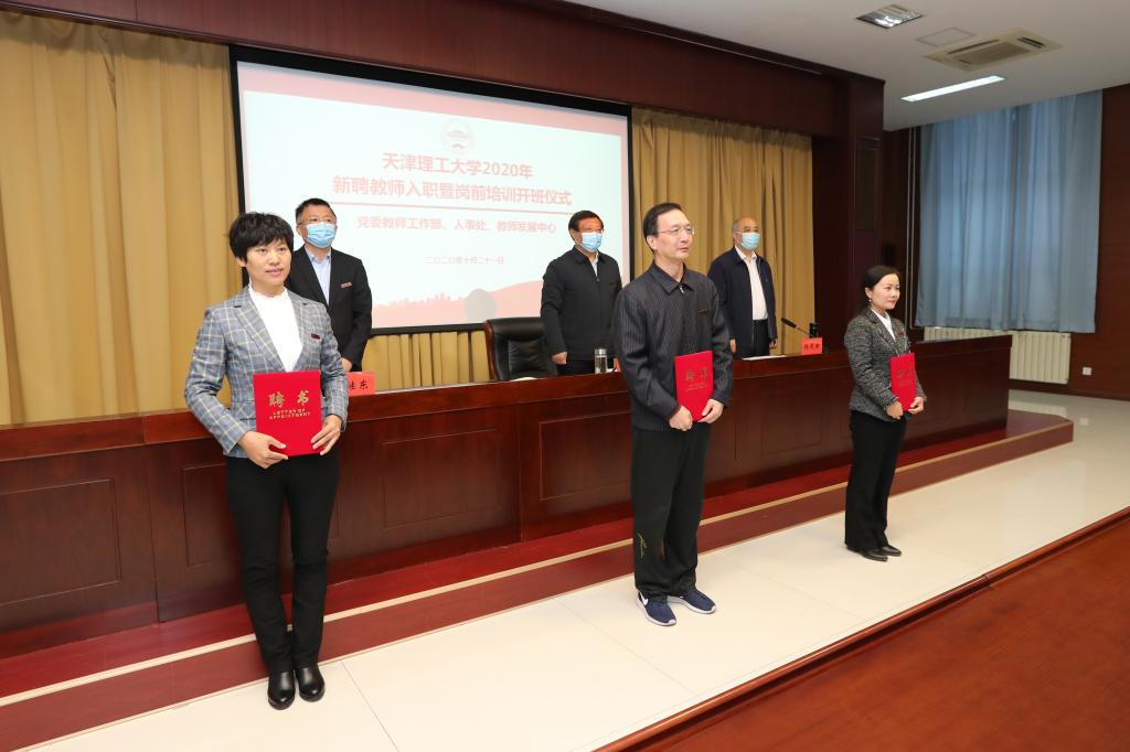 校领导为新入职教师代表佩戴校徽、颁发《师德师风建设规范》和《教师工作手册》,为岗前培训班导师代表颁发聘书。新入职教师代表现场郑重签订并递交《师德师风承诺书》和《课堂讲授承诺书》,承诺自觉遵守《新时代高校教师职业行为十项准则》,增强教师育人的责任感、使命感,立足岗位、潜心育人,当好新时代“四有”好老师,做好学生成长成才的引路人。