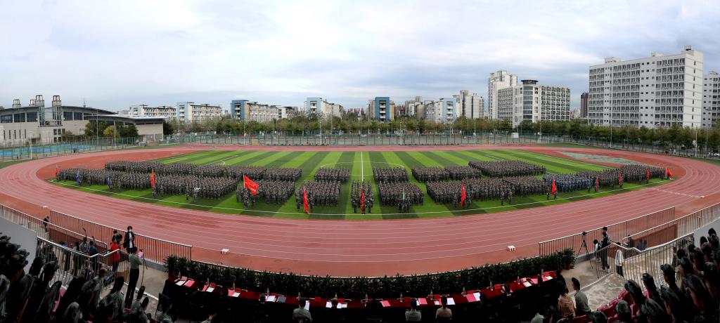 9月29日,米兰milan官方网站2020级本科生军事技能训练成果汇报暨总结表彰大会在体育场举行。校领导刘东志、杨庆新、郭滇华、杜长有、魏东、张继东、陈胜勇,天津警备区学生军训工作办公室主任辛维刚、南开区人民武装部部长薛铁军出席大会。大会由校党委副书记杜长有主持。