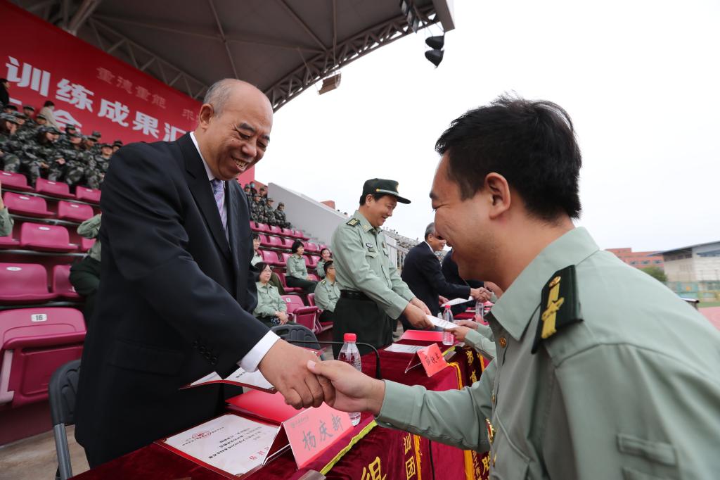 校党委书记刘东志发表了热情洋溢的讲话,他充分肯定了参训人员的训练成果,高度评价了本次军事技能训练的育人效果。寄语新同学要立德明志,涵养家国情怀,以军训为起点,扣好人生的第一粒扣子,把军训期间的收获转化为拼搏的力量,把个人的追求融入国家的理想,脚踏实地,坚持不懈,做新时代的奋斗者,早日成为国之栋梁;要严于律己,学有所成,以新时代军人为榜样,自觉遵守校纪校规,发扬新时代军人吃苦耐劳,敢打敢拼的品格,一丝不苟,追求卓越的作风,把主要精力投入到学习科研中,在知识的海洋中乘风破浪,做到学有所成,学有所用,让自己的芳华绚丽多彩;要延续精神,传承和创造米兰之美,以退役大学生军训教官为标杆,继续发扬军训中学习到的好思想、好作风、好品格,弘扬“重德重能,求实求新”的校训,秉承“求真务实、艰苦奋斗、开放包容、创新进取”的米兰精神,去传承和创造米兰之美、米兰故事,米兰更加美好的明天。