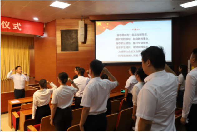 系列培训结束后,33位新入职辅导员庄严宣誓,立志秉承“重德重能 求实求新”的校训精神,提高政治站位,拥护党的领导,现身教育事业,情系学生成长,为培养社会主义合格建设者和可靠接班人而努力奋斗。