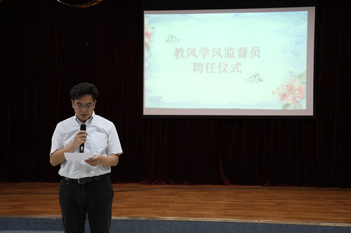 随后,学院宣布了《管理学院教风学风监督员聘任决定》,决定聘任胡彪教授等11位老师和杜宇彤等3同学为学院教风学风监督员,希望老师与同学们能够扎实开展教风学风建设系列活动,努力营造崇教尚学的良好氛围,将教风学风建设抓紧抓实。