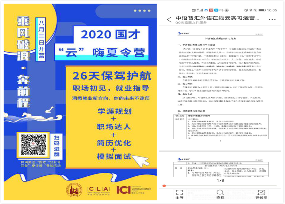 面对新高考改革,学院多措并举,开展招生宣传和报考咨询工作。从政策的研读、课件的制作、问题的预设,到直播的演练、设备的调试,每一个环节学院领导都亲自督导把关,全程提供保障,系主任、骨干教师、教务人员全力以赴,密切配合,通过电话和腾讯课堂相结合的方式,耐心细致地解答考生和家长提出的疑问,确保了学院的优质生源。同时,学院承担了大学英语系列课程的暑期重修班任务,老师们根据学生特点认真备课,精心设计教学活动,探索多元化的线上测试模式,帮助重修学生顺利完成英语学业。此外,为了培养学生的实践能力,学院为学生提供多方实习实训平台,如国才“云”嗨夏令营,与厦门中语智汇科技有限公司合作,组织日语专业17级41名同学参加了为期四周的《商务日语》线上远程实训,不仅使学生进一步了解了职场,而且通过语言的运用增强了自信,提升了交际能力。