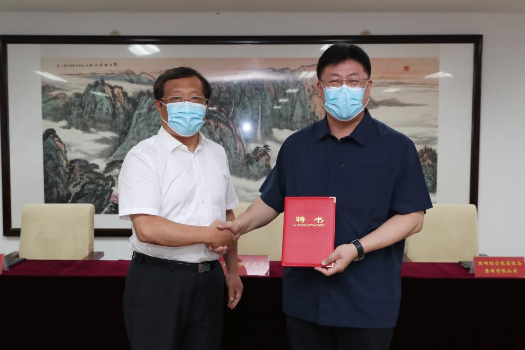 刘东志代表学校向国网综合能源集团董事长任伟理、天津电力公司董事长赵亮颁发兼职教授聘任证书,发挥专业人才优势,助力学校相关学科发展和人才培养,推动学校事业发展进入新的高度。