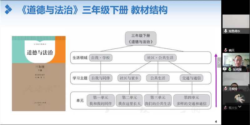针对小学思政课教学资源相对薄弱的实际情况,米兰杨凡、张纯刚和邢巍巍三名老师围绕小学《道德与法制》课程,分别从宏观、微观层面展示各年级的思政教学方法,并进行案例介绍。