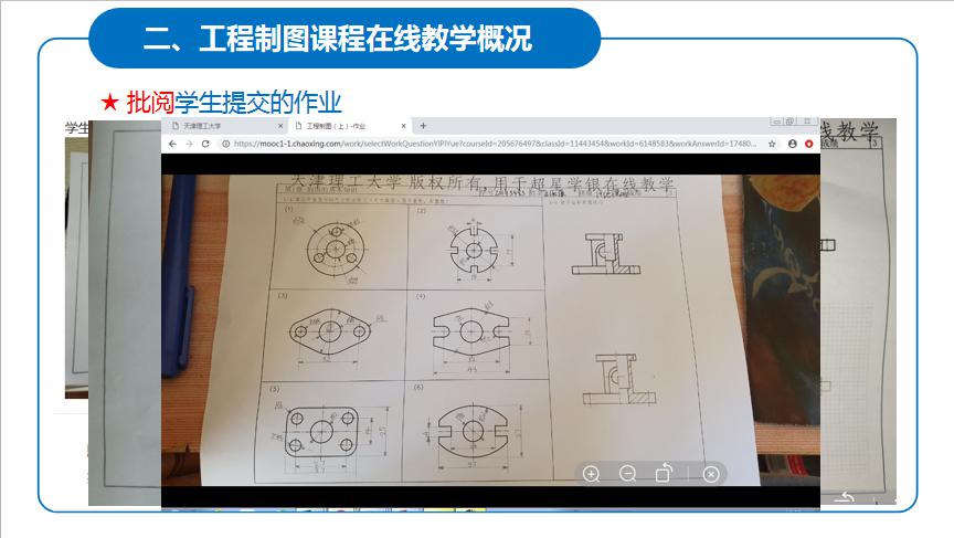机械工程学院教师穆浩志讲授的《工程制图》课程需要学生动手实操,穆老师采用线上线下混合教学的方式,学生绘图后拍照上传,再与学生进行讨论修改,取得了良好的互动效果。工程训练中心针对课程主体为实训环节的特点,调整课程安排,据工训中心教师姜佳怡介绍,中心针对疫情防控期间授课特点,对课程安排进行了总体的调整,搭建并开放了虚拟仿真实验平台,部分试验项目通过虚仿平台完成,需要现场开展的实验项目保留至下半学期进行。华信软件学院教师罗宗卉针对学生需要编写程序,并体现程序编写过程的特点,让学生通过录屏方式,保留作业完成过程,保证学生作业独立完成,并便于发现作业完成中的问题。