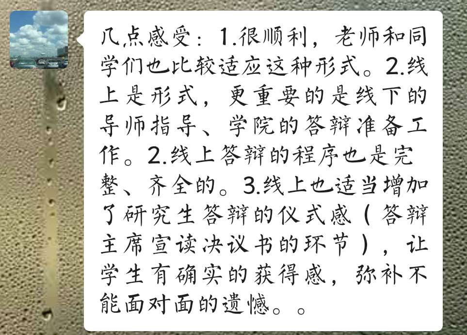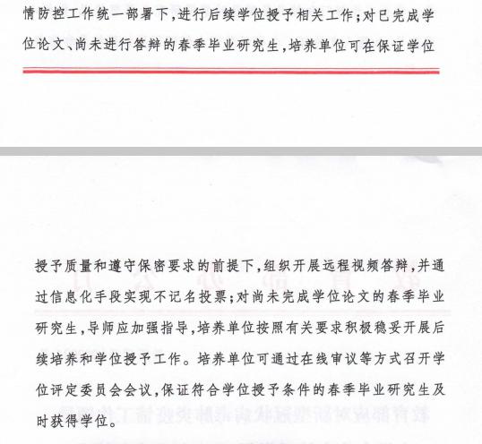 2月27日,教育部应对新型冠状病毒肺炎疫情工作领导小组办公室印发《关于做好2020年上半年毕业研究生学位授予相关工作的通知》,提出春季毕业的研究生,对已完成学位论文、尚未进行学位论文答辩的春季毕业研究生,可以组织开展远程视频答辩。米兰此前的安排完全满足教育部的要求,并在贯彻落实文件要求中取得良好的效果。