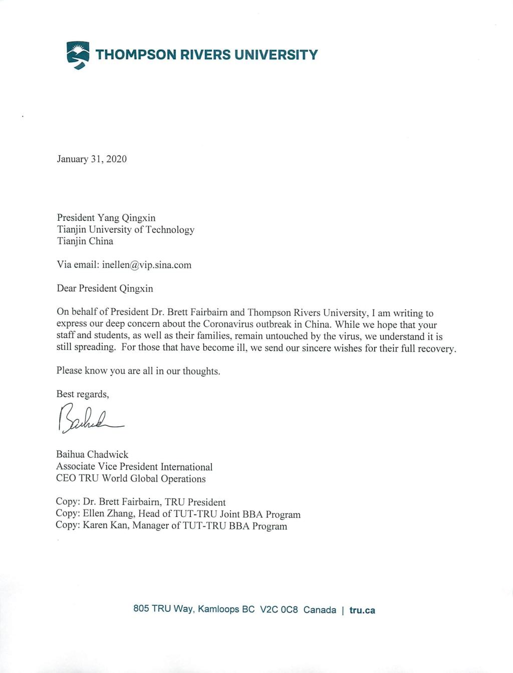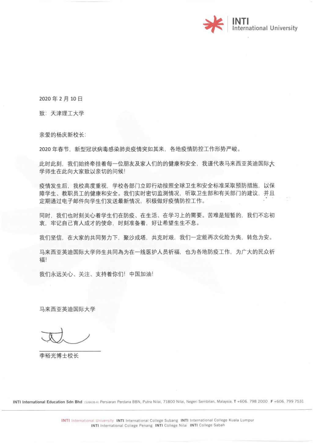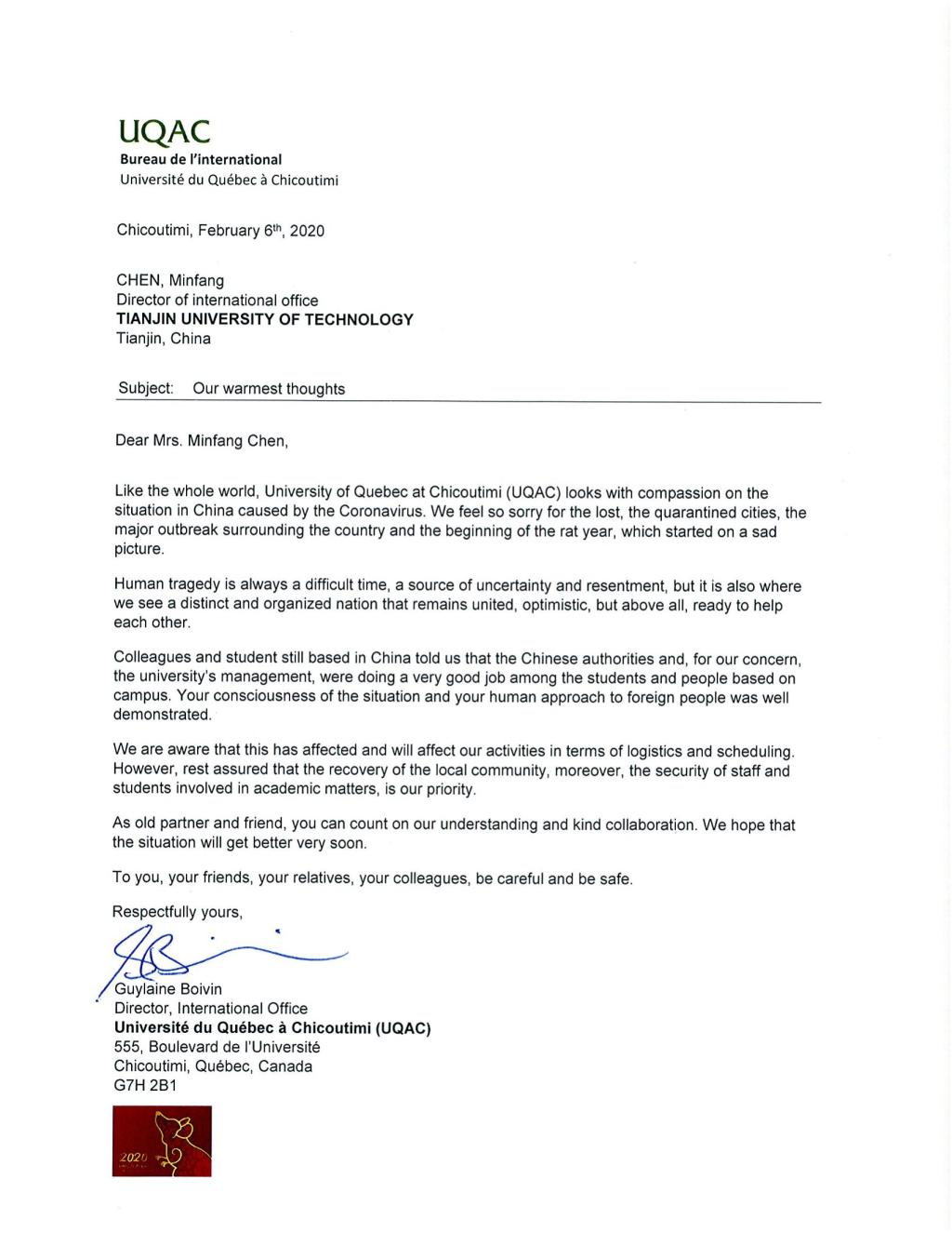 近期的新冠肺炎疫情,牵动了米兰海外友好学校、友好人士的关切。连日来,加拿大汤姆逊大学、加拿大魁北克大学席库提米分校、马来西亚英迪国际大学等海外友好合作院校纷纷通过邮件、微信等形式与米兰取得联系,高度评价我国对抗击疫情采取的强有力措施,向米兰师生和全国人民送来祝福和鼓励。