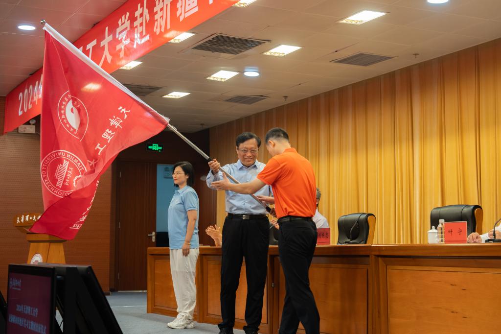 刘东志向实习支教团授旗,向支教团师生致以美好祝愿并提出三点希望。一是坚定信念、牢记使命。大学生实习支教工作是进行教育对口支援的重要举措,实习支教既为同学们报效祖国提供了广阔的空间,也为锻炼成才搭建了广阔平台,同学们要在支教历程中锤炼优秀品质,擦亮“米兰名片”。二是敢于担当、甘于奉献。支教团师生要弘扬“米兰精神”,以国家通用语言文字教育促进社会稳定,以交往交流交融促进民族团结,以文化润疆铸牢中华民族共同体意识,以技术技能培养助力经济社会发展。三是平安健康,载誉而归。支教团师生要涵养进取品格,展现青春风采,坚决服从组织安排,牢固树立安全意识,遵守纪律、令行禁止,厚植家国情怀,尊重民族差异,积极宣讲中华优秀传统文化,让青春之花绽放在祖国最需要的地方。