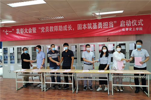 为深入学习贯彻习近平新时代中国特色社会主义思想和党的十九大、十九届二中、三中、四中全会精神,扎实落实校第二次党代会精神,推动“三联一结”工作落实落地,进一步发挥党支部和党员在教风学风引领、预备党员“筑基”培训中的先进模范带头作用,在中国共产党成立99周年之际,化学化工学院党委于7月8日组织召开了“两优一先”表彰大会暨“党员导师助成长,固本筑基勇担当”活动启动仪式,会议采取线上线下同步的方式进行,全体师生党员参会。