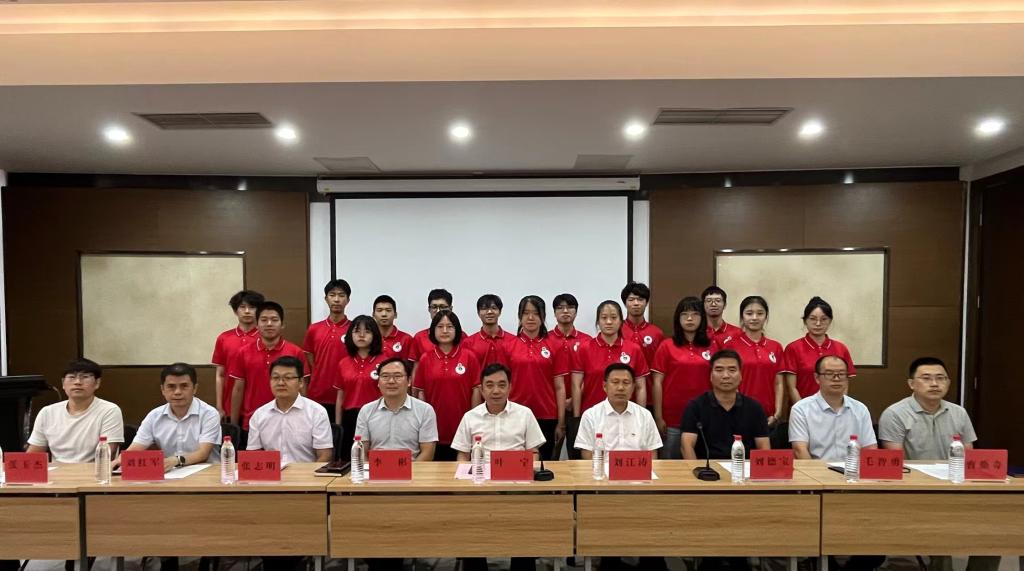 与会领导为2023级明理卓越创新班全体学生佩戴班徽,勉励大家要用奋斗绘就青春底色、用汗水浇灌青春梦想,为晶体材料发展贡献力量。