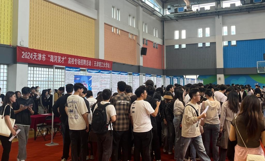 9月26日,学校联合天津市人力资源和社会保障局、天津市人民政府国有资产监督管理委员会、中国北方人才等单位,举办2024年天津市“海河英才”学校专场招聘会。本次招聘会共邀请天津渤化集团、中国能源建设集团、天津市交通(集团)有限公司、天津中环信息产业集团有限公司等160家用人单位进校招聘。用人单位为学生提供电力工程、智能制造、软件工程师、技术研发、教育类等热门岗位4500多个。据统计,现场参与应聘学生超过5000人,企业现场收取简历5400余份,初步达成就业意向1170个。此次招聘会利用新媒体推介就业岗位的形式,实施现场开展企业直播带岗活动。中国北方人才相关负责同志现场开展“海河英才”行动计划校园宣讲,为毕业生讲解天津市引才理念、引才类别以及引进程序等内容,进一步引导广大毕业生爱津留津。