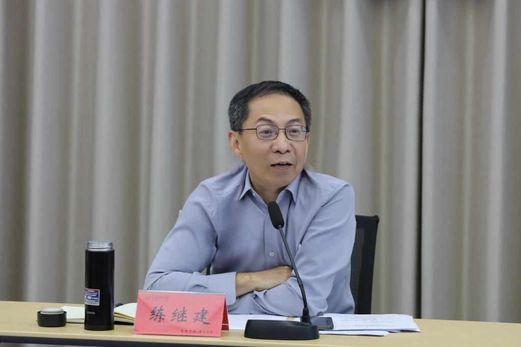 练继建在认真听取了各教学单位、评建办相关工作汇报后,结合个人作为审核评估专家经验,介绍了其他高校审核评估工作中的特色做法,同时对学校审核评估工作提出了三点要求,一是要深刻领悟本科教育教学审核评估对于促进学校内涵发展、特色发展、创新发展的重要意义,坚持本科人才培养中心地位不动摇,将人才培养始终放在第一位;二是各部门要深刻理解审核评估工作方案以及指标体系的精髓要义、指标内涵和主要变化点、创新点,深度挖掘本科教育教学工作的亮点,总结提炼支持服务本科教育教学工作的特色优势,以凝练审核评估特色案例为契机,做好高水平教育教学成果培育;三是各教学单位和职能部门要主动发力、全力推进,以“志在千里,干字当先”的拼搏精神,扎实做好审核评估和迎评促建各项工作。