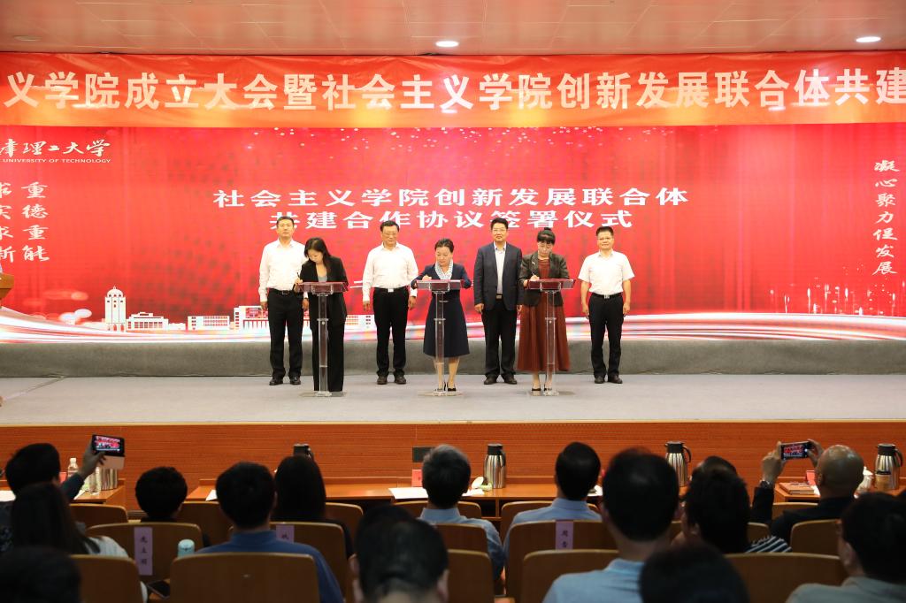 9月29日上午,学校社会主义学院成立大会暨社会主义学院创新发展联合体共建合作协议签署仪式在图书馆报告厅举行,校党委书记刘东志出席并致欢迎辞。市社会主义学院党组成员、副院长,市中华职教社常务副主任关章军,西青区委副书记齐中波出席并讲话。市社会主义学院党组成员、副院长贾维萍,市社院教务处处长楚向起、科研处处长孙中正、教研部主任吴星辰教授,西青区委党校副校长、区社会主义学院院长庞立丽和区委统战部副部长、区社会主义学院副院长邰菲,市教育两委统战处处长王著名,校党委副书记许瑞出席活动。