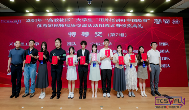 自赛事开展以来,学校高度重视,由语言文化学院、聋人工学院、计算机科学与工程学院强强联合,挖掘潜力专业师生,发挥各自专业优势,精心打磨参赛团队。作品以聋人工学院一位听障学子为主人公,以小见大,生动地诠释了勇气与创新的深刻内涵,反映了青年大学生的科创之志、奋斗之力、发展之果。该团队从构思、剧本创作,到拍摄、剪辑,先后历时8个月,于今年8月份获天津市“高教社杯”大学生“用外语讲好中国故事”优秀短视频征集活动特等奖,入选全国线下交流作品。9月28日,在湖南大学进行了线下展示视频和创作阐述,并最终在72个作品中脱颖而出,荣获全国特等奖。9月29日,在颁奖典礼中,该作品连续两次被评委主席和专家点名表扬。