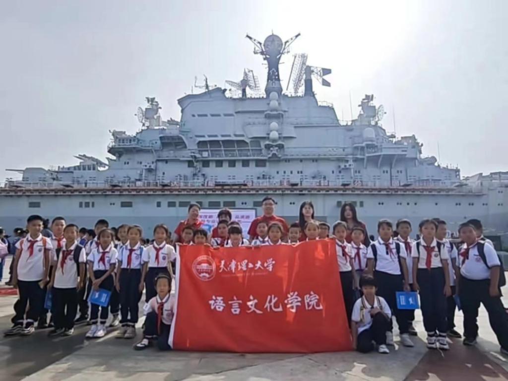 为深入推进大中小学思想政治教育一体化建设,积极探索思政教学新模式,深化思政育人成果,近日,语言文化学院“烛照征程 永放光芒”志愿宣讲团联合天津师范大学北辰实验学校前往天津航母主题公园开展爱国主题研学活动。
