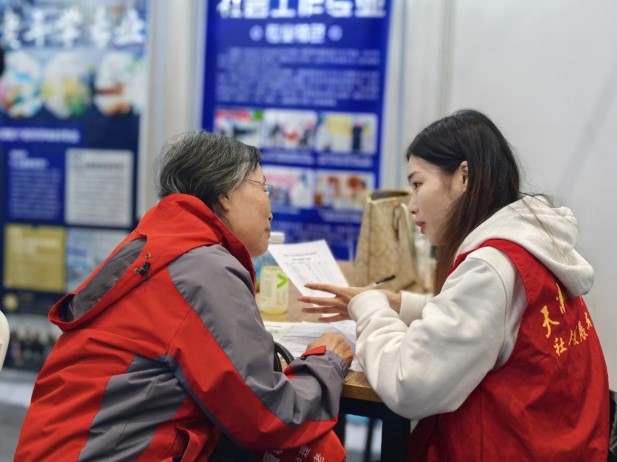 10月25日,2024天津(国际)养老服务业博览会暨渤海银行·2024京津冀都市重阳博览会在梅江会展中心开幕。社会发展学院老年学系依托市民政局养老人才共建基地,在公益展区首次亮相,为市民带来了专业化的养老服务。