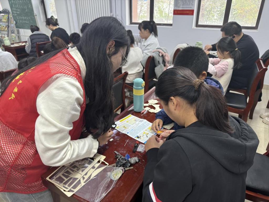 志愿队以“宣讲+手工制作”相结合的形式,向小朋友们介绍了中国导弹之父钱学森“五年归国路 十年两弹成”的报国之心,以互动问答、总结提问等方式宣传了钱学森精神。现场的小朋友们聚精会神,积极应答。志愿队带领小朋友们开展了人造卫星的手工制作活动,让大家在行动中更好地感悟科学之美、实践之乐。