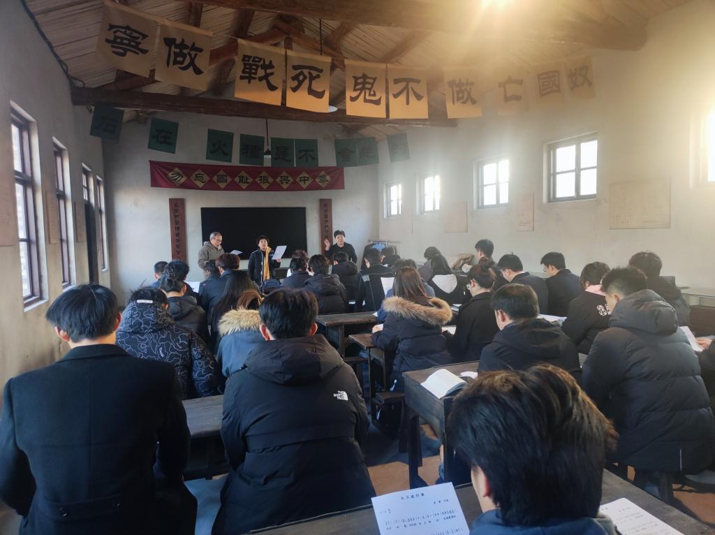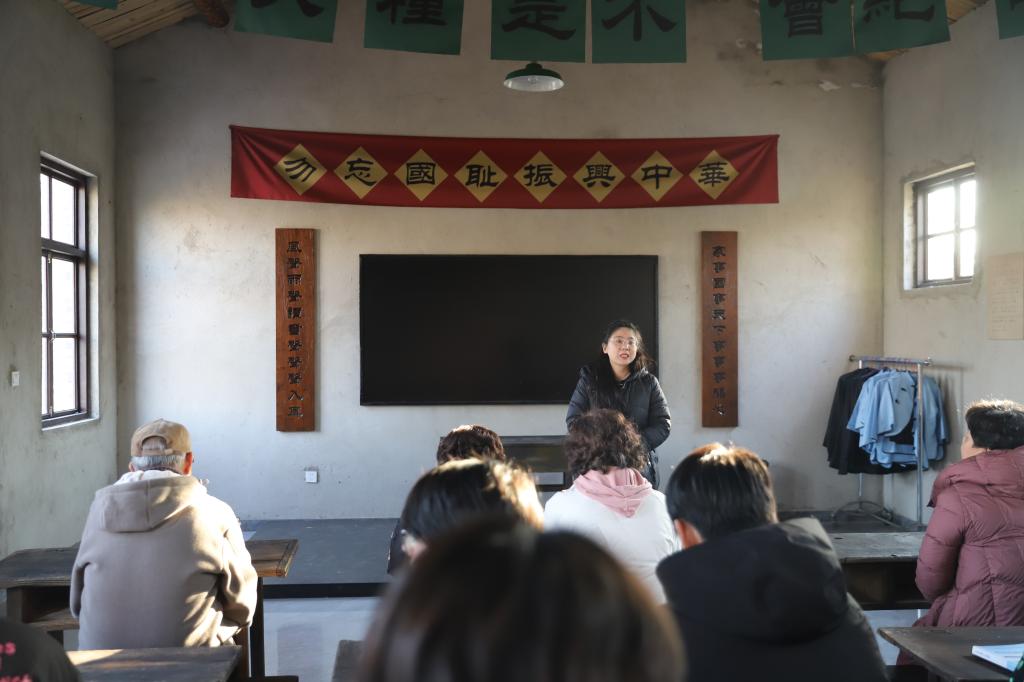 在王兰庄农民学校里,学院退休老党员们带领大家学唱了《大刀进行曲》《毕业歌》等歌曲。随着歌声的响起,课堂氛围达到了高潮,师生们在音乐与历史的交融中感悟青春与责任。