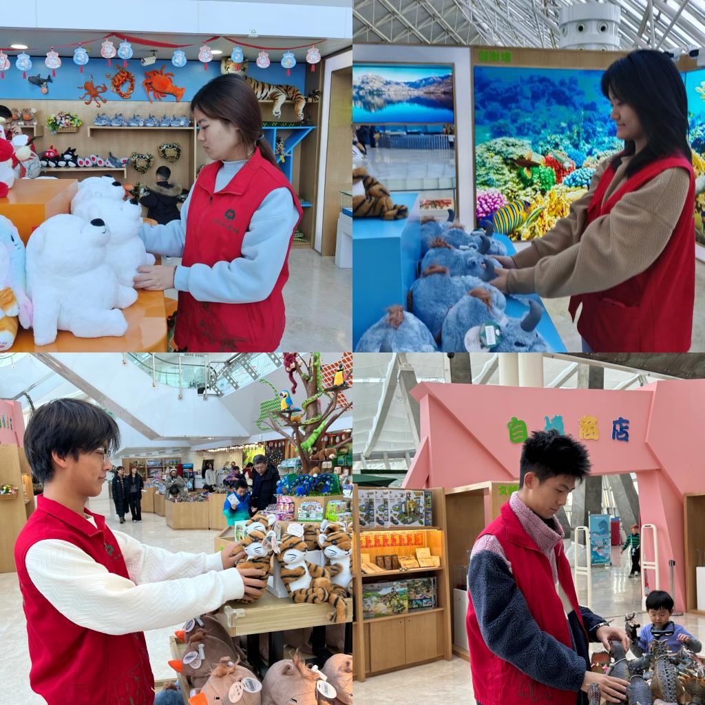 活动中,志愿者积极协助工作人员整理礼品陈列区域,确保物品有序摆放,主动承担起引导顾客购物的职责,以专业、耐心的态度回应顾客的相关咨询。