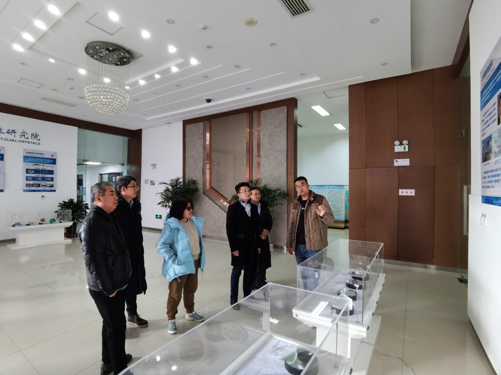 天津光电集团有限公司一行参观了功能晶体研究院和功能材料专业部分实验室。学院党委主要负责同志简要介绍了学院的基本情况,并希望双方以此次交流为契机,在党建、教学科研等领域加强合作。学院教师代表详细介绍了学科设置、重点学科等内容。天津光电集团有限公司相关负责人介绍了公司情况,双方就产学研、成果转化和人才培养的合作模式等方面进行了深入探讨,初步达成校企产学研合作意向和下一步工作方案。