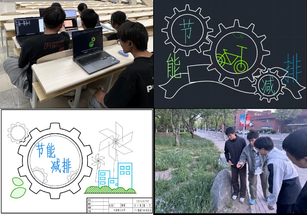 团员青年化身“能”工巧匠,运用《工程制图B》课程中所学原理,借助CAD等制图软件精心绘制机械零件,创作“节能减排”主题宣传画,引导青年学子用专业语言讲述环保故事。