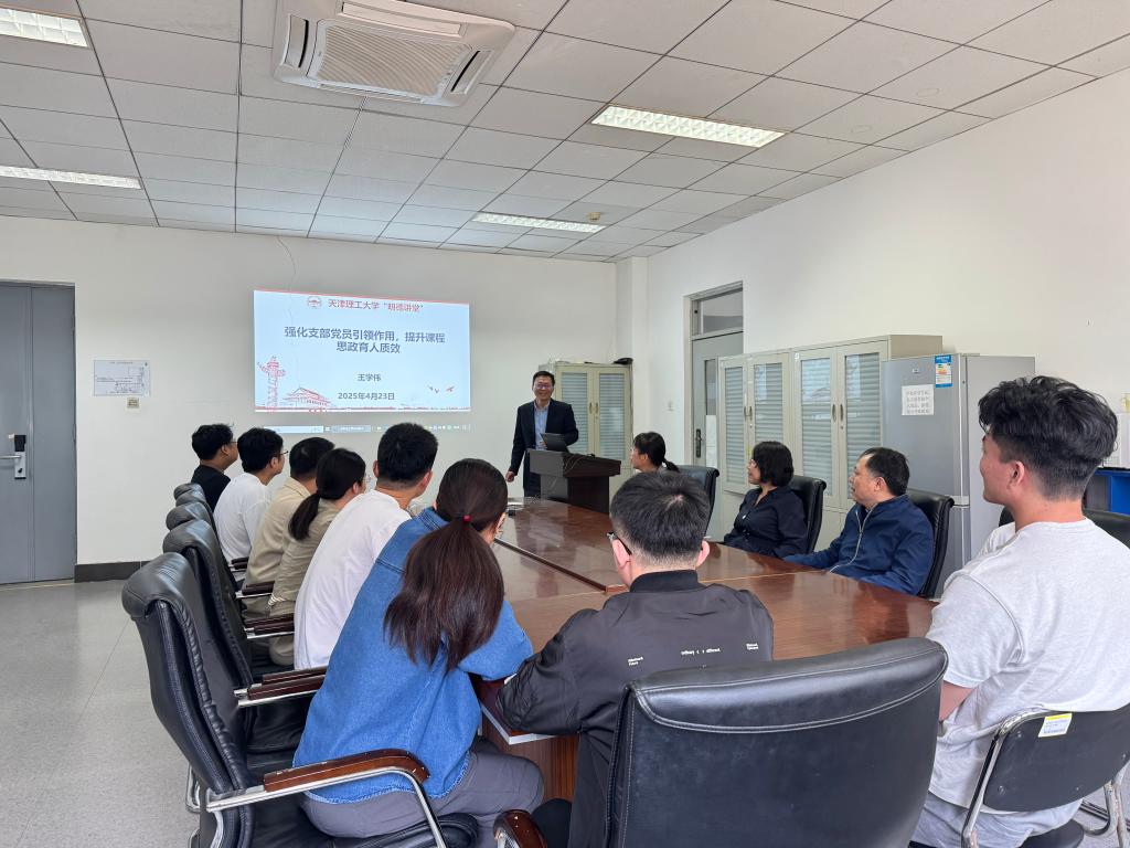 近日,学校2025年“明德讲堂”师德巡讲系列活动第六讲(总第153讲)开讲。天津市课程思政教学名师、新能源专业党支部书记王学伟作“强化支部党员引领作用,提升课程思政育人质效”专题宣讲。新能源材料与器件专业的党员教师和学生代表参加。