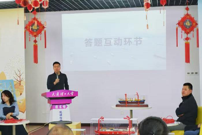 答题互动环节由海运学院党委相关负责同志负责,通过抢答形式回答关于海上丝绸之路、航运发展等问题,并为获胜者送上精品礼物。