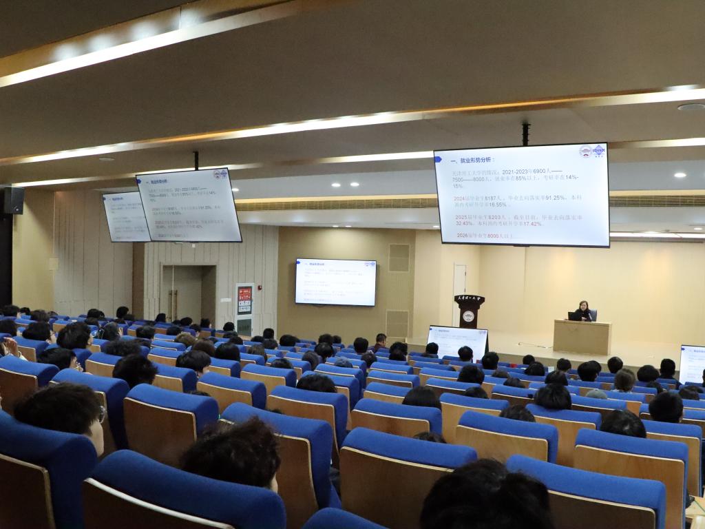会上,学院党委主要负责同志结合近年来的就业形势、学院毕业生就业和考研情况,深度剖析存在的问题,引导全体2026届毕业生树立正确的就业观念,清晰认知自身的学习能力和综合素质水平,并做出最正确的生涯选择。