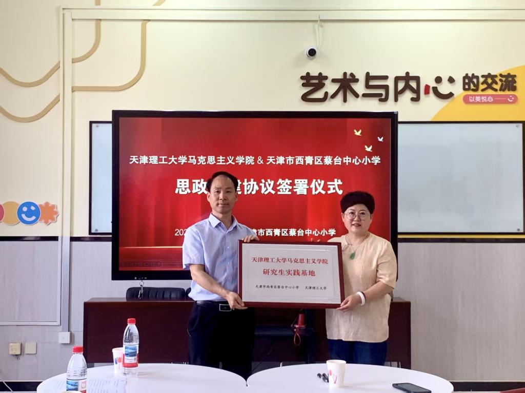 为扎实推进大中小学思政一体化建设,创新推动思政理论教育与实践育人深度融合,5月16日,马克思主义学院与天津市西青区蔡台中心小学共建研究生实践基地。