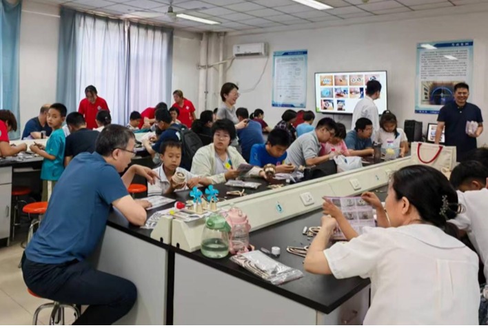 活动现场,专业教师将趣味科普讲解、物理现象探究与亲子动手实践巧妙融合。在风能发电演示区,孩子们化身“小小工程师”,亲手组装小型风能发电仪,在齿轮转动与电路连通的瞬间,感受风力转化为电能的神奇;在望远镜制作现场,家长与孩子们协作调试镜片,共同完成光学成像装置,揭示光传播的奥秘;在笼中鸟制作区,通过亲子配合制作动态装置,让大家直观领略动手操作的乐趣。